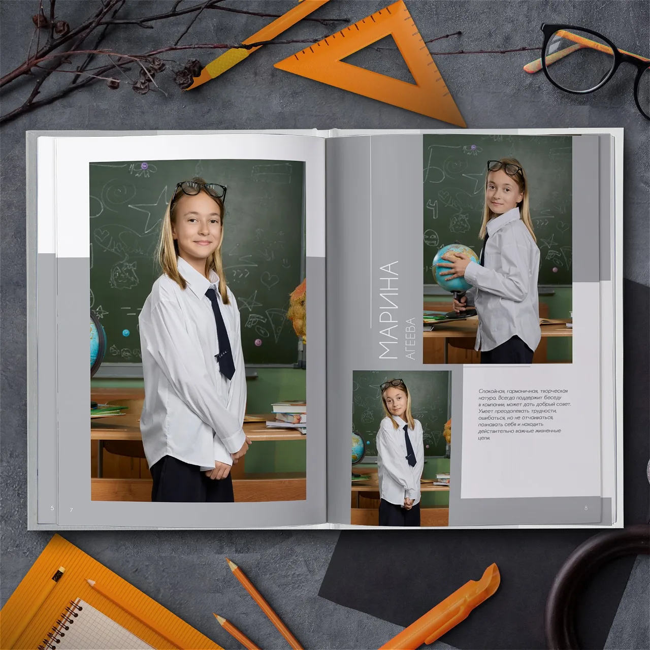 - Две личные страницы ученика с репортажными фото