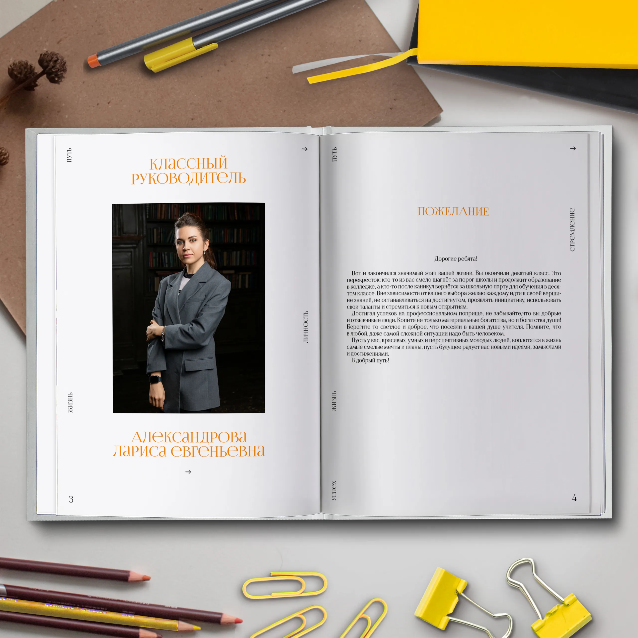 4ый разворот и далее — личные страницы учеников с личной характеристикой